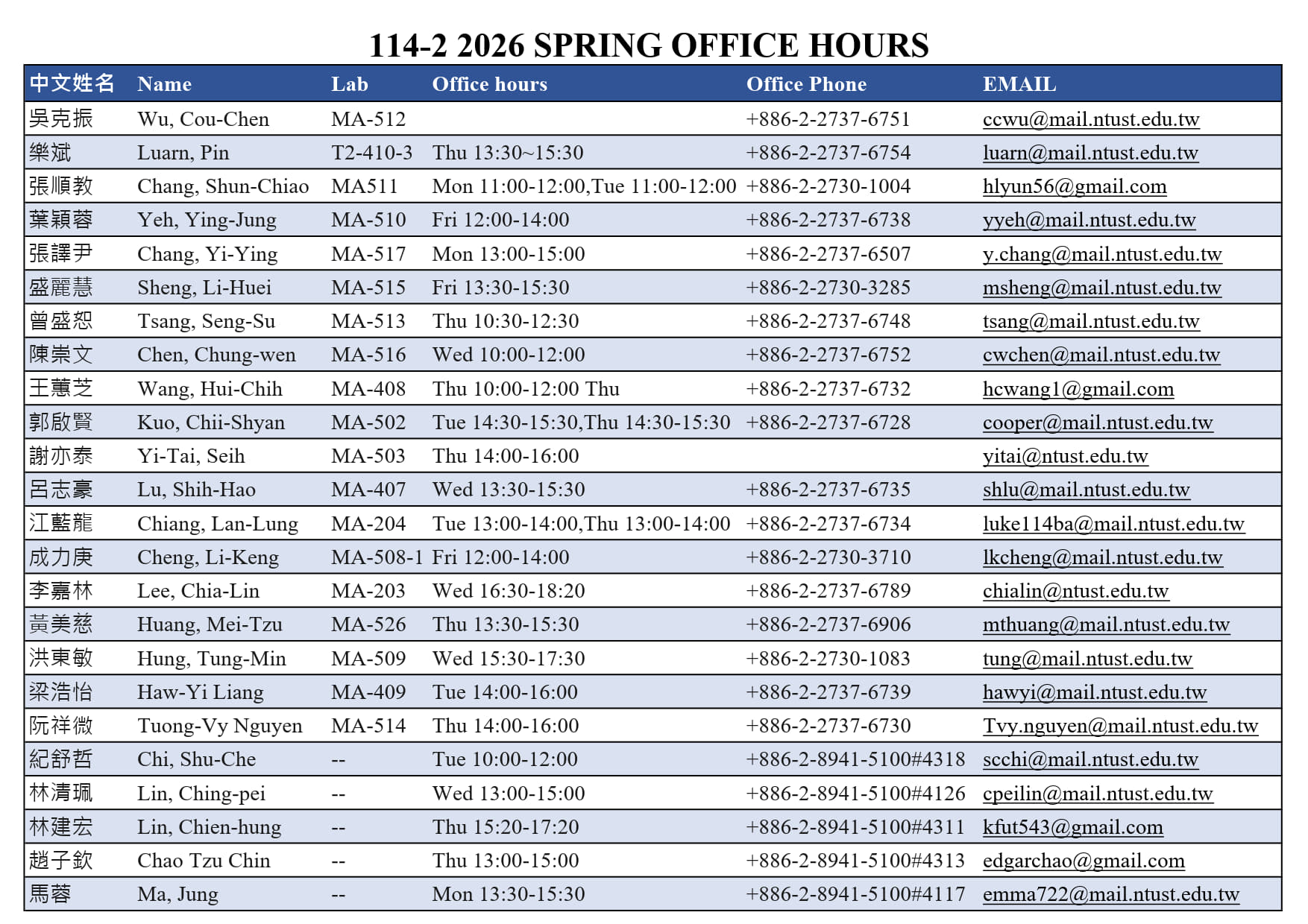114年第二學期OFFICE HOURS